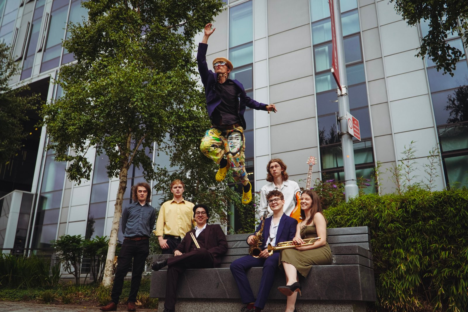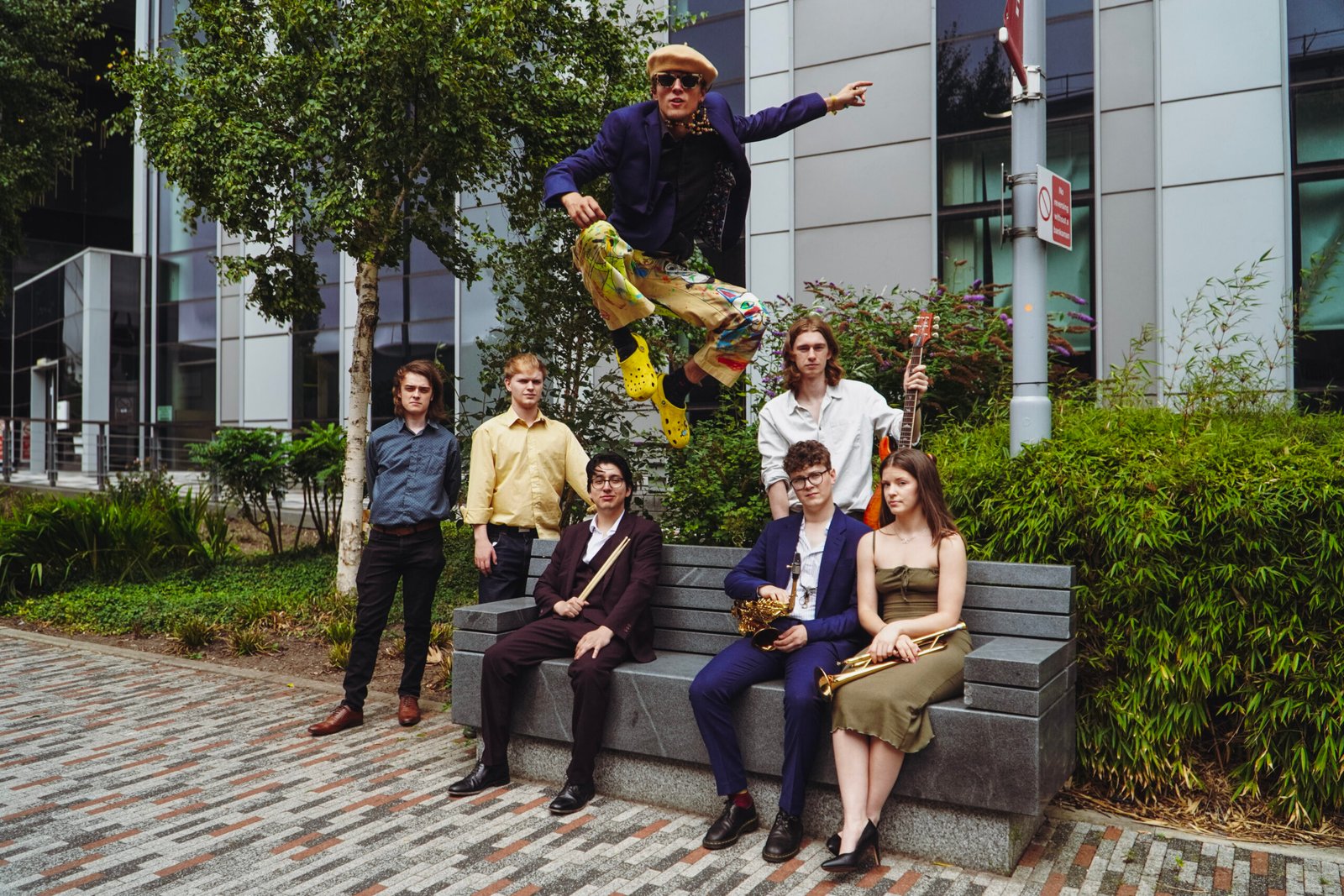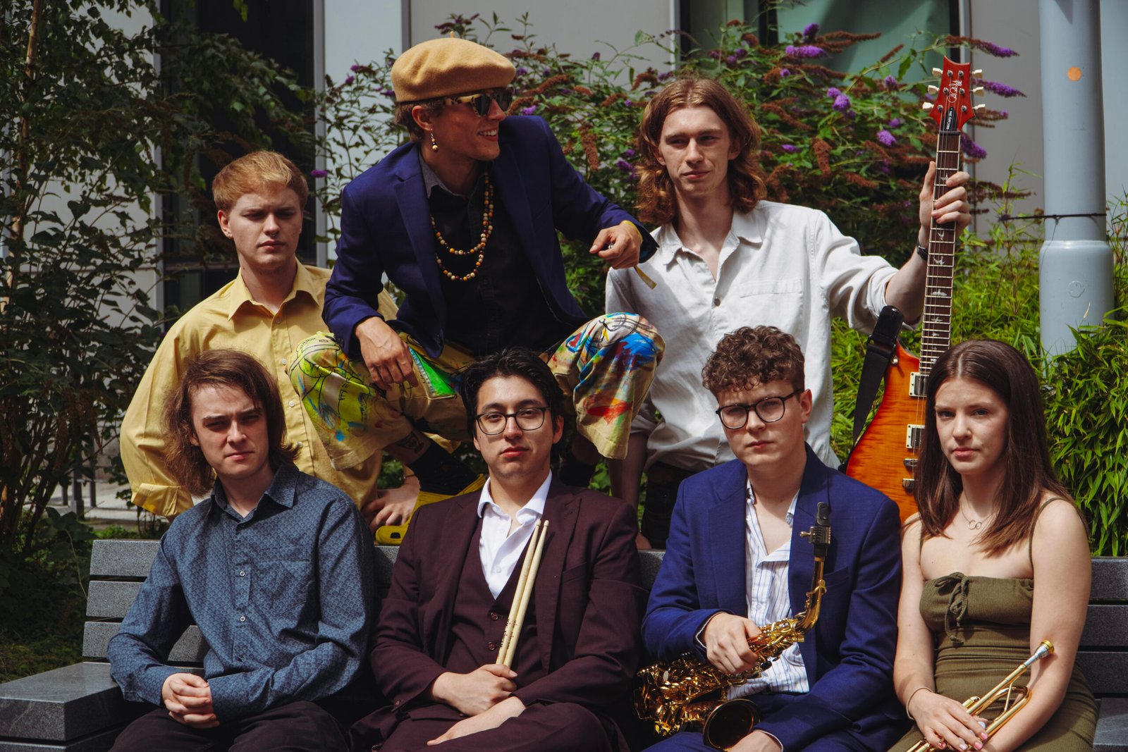At the heart of Third Floor is a tight-knit team of talented musicians, each bringing their own flair and musical background to the mix. The band was co-founded in 2021 by Ben Baldwin (director and saxophonist), Anna Richardson (trumpet), Isaac Judd (guitar), and Jake Johnstone (bass), forming the core of a group that thrives on collaboration and creativity. Joined by charismatic frontman Sam Roberts on vocals, groove-master Diego Villarreal on drums, and maestro Lucas Kelly on keys, the band blends expertise across jazz, funk, soul, and pop. Together, they create powerful original music, unique arrangements, and vibrant covers that showcase the full force of their collective sound, they’ve even been praised as having the “No.1 brass section in England.”.